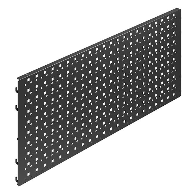 Панель оснащена квадратной перфорацией 10×10 мм с шагом 38 мм, что позволяет установить большое количество держателей для гаечных ключей, отвёрток, сверл, торцевых головок и полок различного размера.