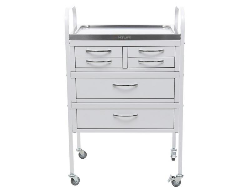 • столик процедурный имеет 4 колеса из немаркой резины, D=50 мм. Два колеса снабжены тормозом