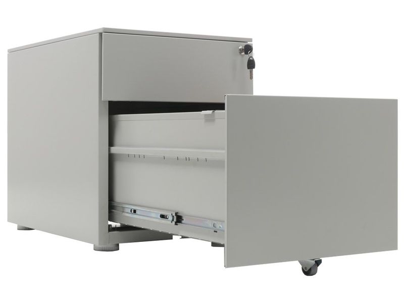 - Опции: пластиковые лотки и металлический ящик для канцелярских принадлежностей и других предметов. Возможность комбинирования цветов: корпус + фасады ящиков и крышка (конструкция тумбы металл+металл). Или отделка фасадов ящиков и крыши тумбы ламинированной плитой ЛДСП