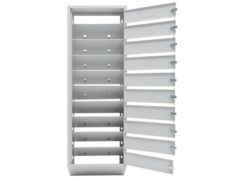 - Каждая секция имеет дверцу, запирающуюся индивидуальным ключевым замком (2 ключа в комплекте).